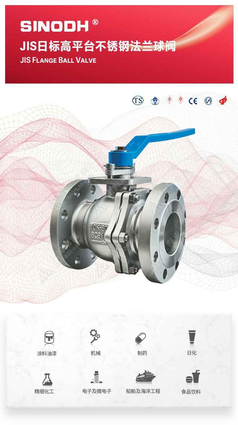 JIS日标高平台不锈钢法兰球阀,为吉林阳光经济咨询服务有限公司自主研发生产本产品设计制造标准符合J1 SB2071标准,该产品的球体(密封件)是浮动的,在介质压力作用下,球体能产生-定的位移并紧压在出口端的密封面上,保证出口端密封。适用于水、溶剂、酸和天然气等一般工业介质,也适用于工况恶劣的介质,如氧气、过氧化氢、乙烯等介质。
